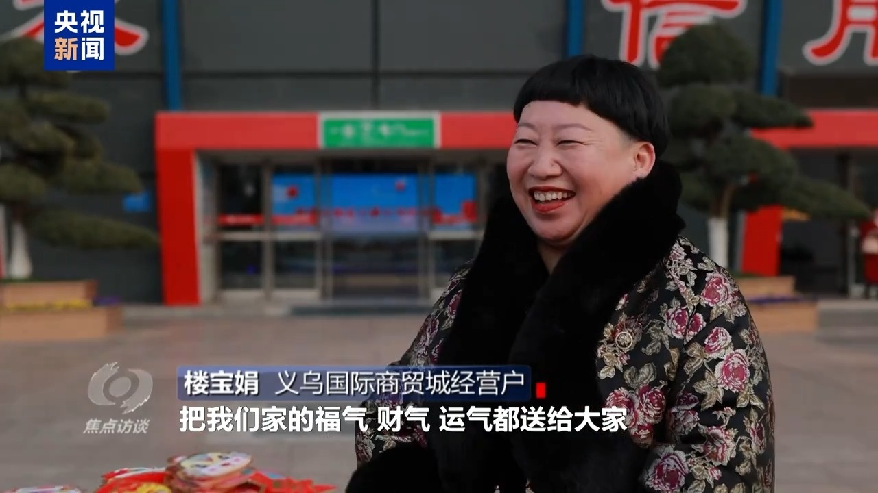 義烏國(guó)際商貿(mào)城經(jīng)營(yíng)戶 樓寶娟:這是我們自己家生產(chǎn)的年畫,把我們家的福氣、財(cái)氣、運(yùn)氣都送給大家。