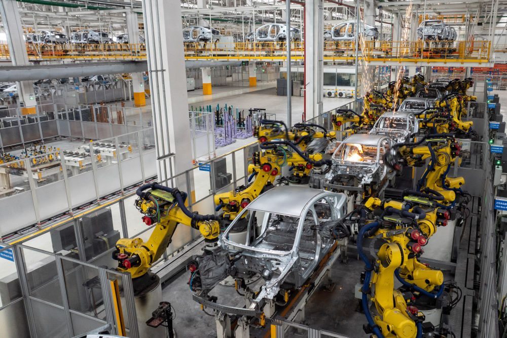 這是2024年3月21日在比亞迪長(zhǎng)沙雨花工廠拍攝的自動(dòng)化生產(chǎn)線。2024年中國(guó)新能源汽車產(chǎn)量突破1300萬(wàn)輛,人工智能、數(shù)字經(jīng)濟(jì)等領(lǐng)域創(chuàng)新成果持續(xù)涌現(xiàn),處處都能看到民營(yíng)企業(yè)大顯身手。