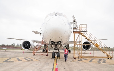 “面前這個大家伙,是來自蒙古航空的波音B787—9飛機(jī),1月中旬飛到海南自貿(mào)港一站式飛機(jī)維修產(chǎn)業(yè)基地接受專項維修服務(wù)。我們要加緊做好發(fā)動機(jī)換發(fā)、專項維修服務(wù)和飛機(jī)封存等工作?!睏顦s川介紹。