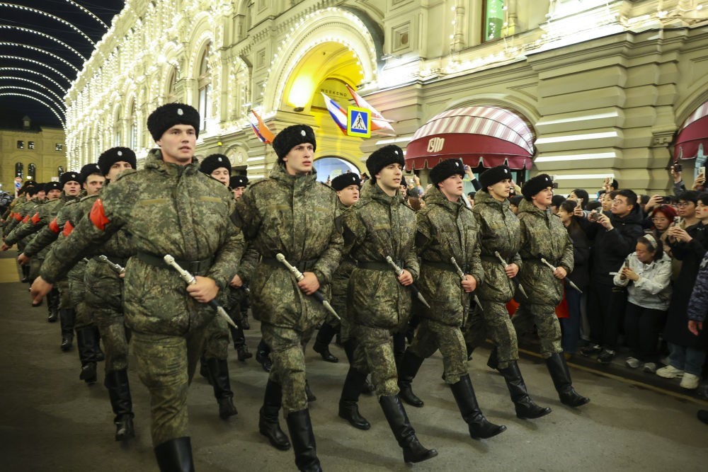 5月3日晚,受閱方隊在俄羅斯首都莫斯科前往紅場參加彩排。當(dāng)日,俄羅斯紀(jì)念蘇聯(lián)偉大衛(wèi)國戰(zhàn)爭勝利80周年閱兵式彩排在莫斯科舉行。新華社記者 姚大偉 攝