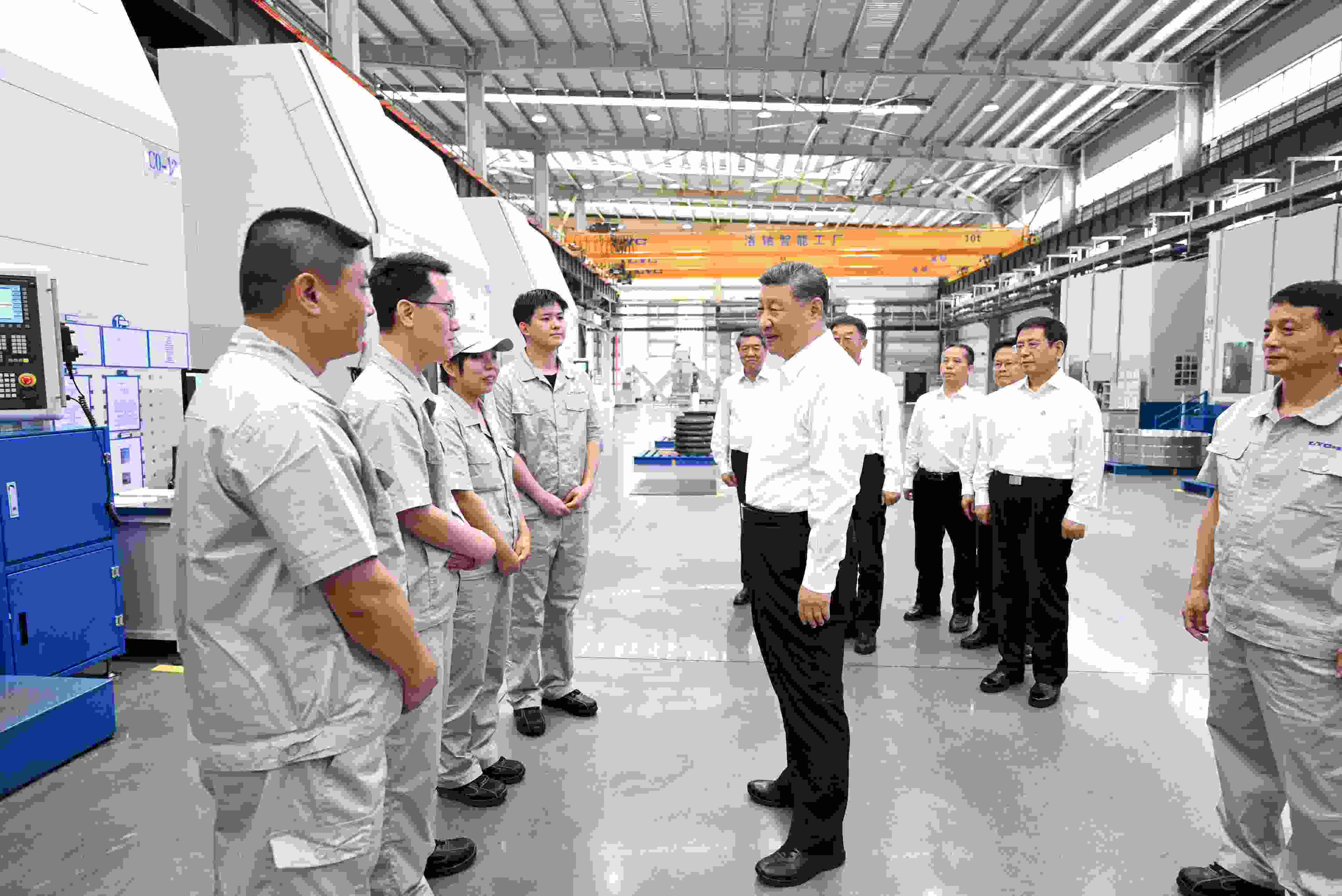 △5月19日,習(xí)近平總書記在河南洛陽(yáng)軸承集團(tuán)股份有限公司智能工廠考察時(shí),同企業(yè)職工親切交流。