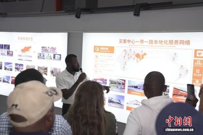 非洲籍工作人員白小龍為代表團(tuán)講解。 金華市貿(mào)促會(huì) 供圖