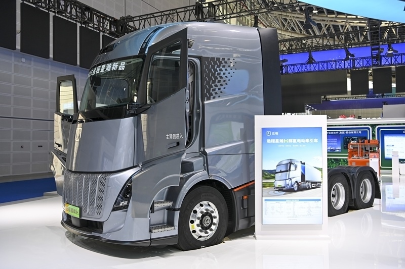 這是在2025年山西(太原)能源產(chǎn)業(yè)博覽會上展示的一款醇氫電動牽引車(9月27日攝)。
