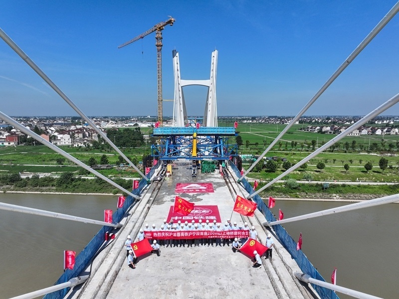 7月1日凌晨,由中國鐵建大橋局承建的滬渝蓉高鐵通泰揚(yáng)特大橋跨引江河斜拉橋順利合龍。