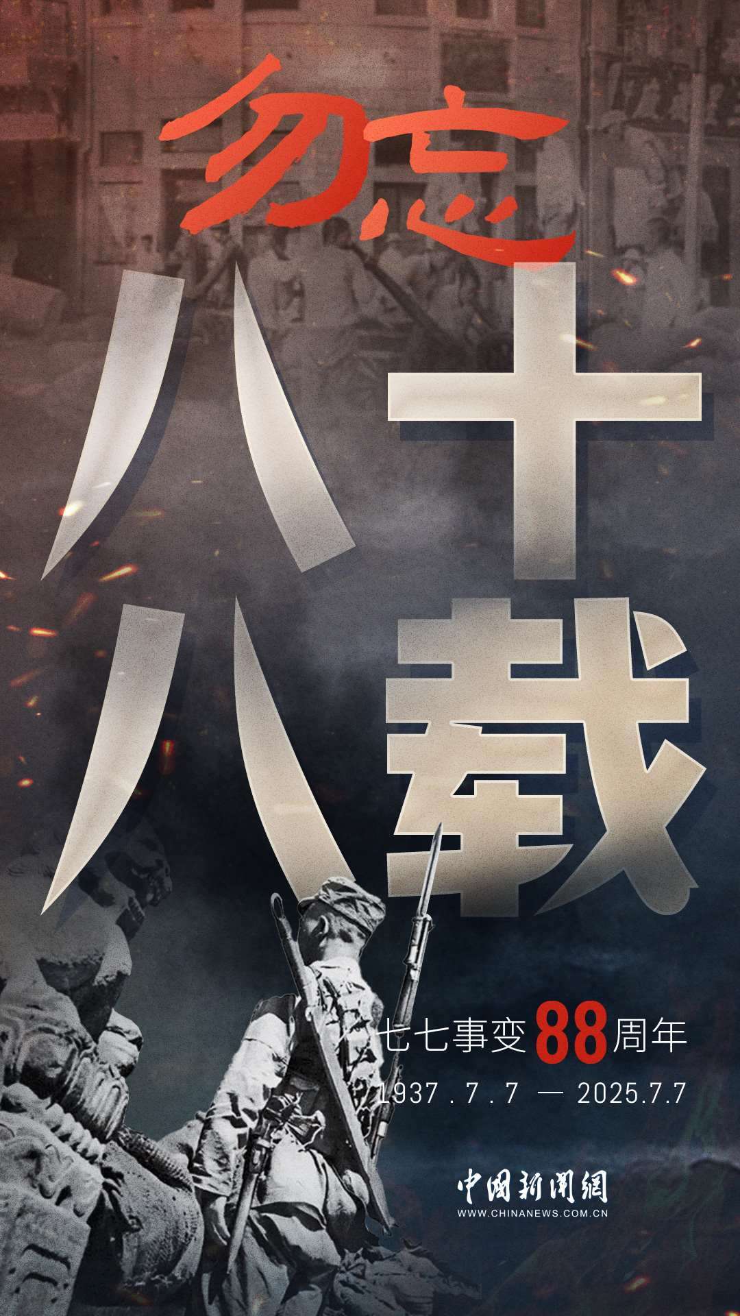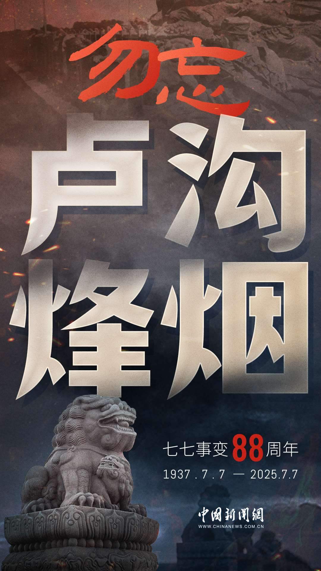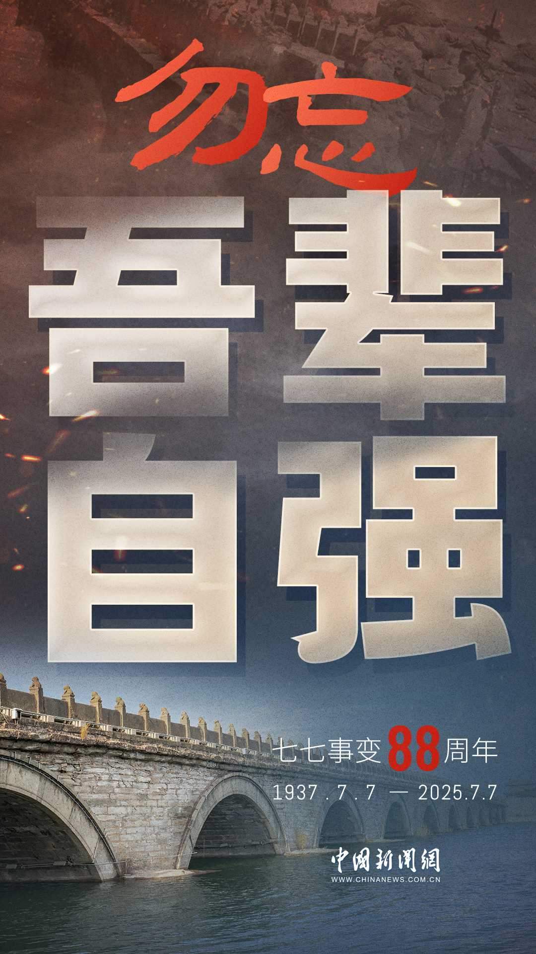 1937年7月7日,盧溝橋的槍聲撕裂長(zhǎng)夜,中華兒女赴湯蹈火,以血肉之軀筑起御敵長(zhǎng)城。88載歲月流轉(zhuǎn),硝煙雖散,彈痕猶在,那段浸透血淚的歷史,是刻在民族記憶里永不褪色的烙印。今日山河錦繡,國(guó)泰民安,正是先烈用生命換來的盛世。七七事變88周年,致敬英烈,銘記國(guó)殤,吾輩自強(qiáng),護(hù)山河無恙!