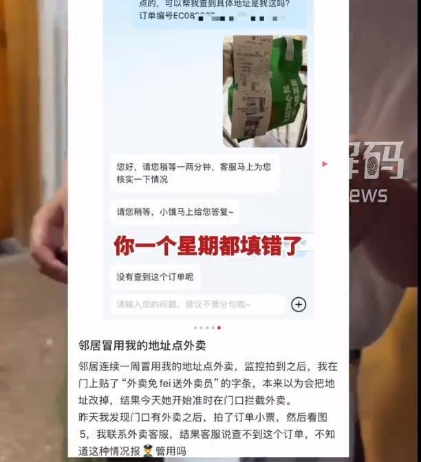 女鄰居冒用他人地址點外賣的行為