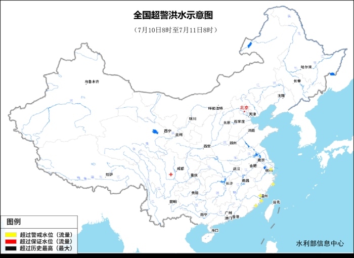 記者從水利部了解到,昨天(7月10日)8時(shí)到今天(11日)8時(shí),受降雨影響,四川青衣江支流隴西河、福建沿海九十九溪及敖江支流斌溪等3條中小河流發(fā)生超警以上洪水。