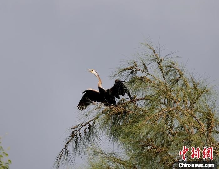 中新網(wǎng)海南昌江7月13日電(陳英清)近日,海南昌江海尾國(guó)家濕地公園記錄到1只黑腹蛇鵜。經(jīng)海南省鳥類記錄中心專家確認(rèn),這是海南省首次記錄到該鳥種。黑腹蛇鵜已被《世界自然保護(hù)聯(lián)盟瀕危物種紅色名錄》(IUCN)列為近危(NT)物種。