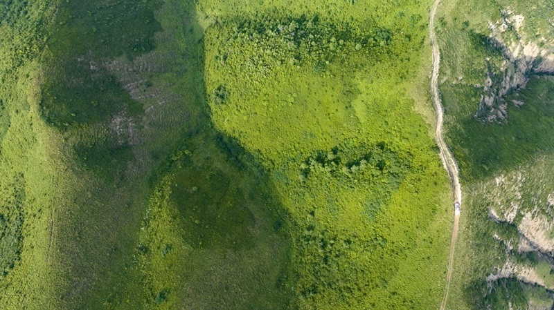寧夏固原市原州區(qū)馬東山林場山坡被綠色覆蓋(7月17日攝,無人機(jī)照片)。