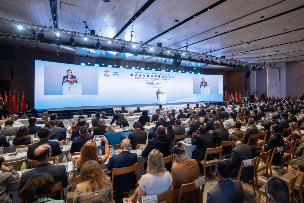 金磚國家媒體智庫高端論壇當?shù)貢r間16日在巴西里約熱內(nèi)盧舉行。來自包括金磚成員國及伙伴國在內(nèi)的36個國家近150家媒體、智庫、政府機構(gòu)和企業(yè)以及中美洲議會等地區(qū)組織的250余名代表出席論壇,共話金磚國家媒體智庫在世界變局中的責(zé)任與擔(dān)當。