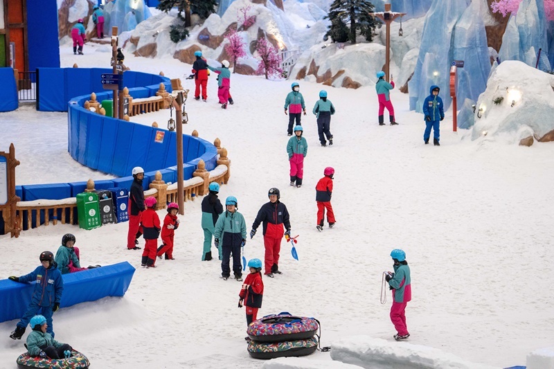 當(dāng)日,湖南長(zhǎng)沙發(fā)布當(dāng)?shù)亟衲晔讉€(gè)高溫紅色預(yù)警,部分區(qū)域最高氣溫升至40℃以上。位于長(zhǎng)沙大王山旅游度假區(qū)的湘江歡樂(lè)城歡樂(lè)雪域迎來(lái)眾多游客。據(jù)了解,這是湖南最大冰雪綜合體之一,深入地下36米打造,溫度常年保持在零下5℃左右,擁有3萬(wàn)平方米的滑雪與娛雪區(qū)域,能為游客帶來(lái)“夏日玩雪”的奇妙體驗(yàn)。