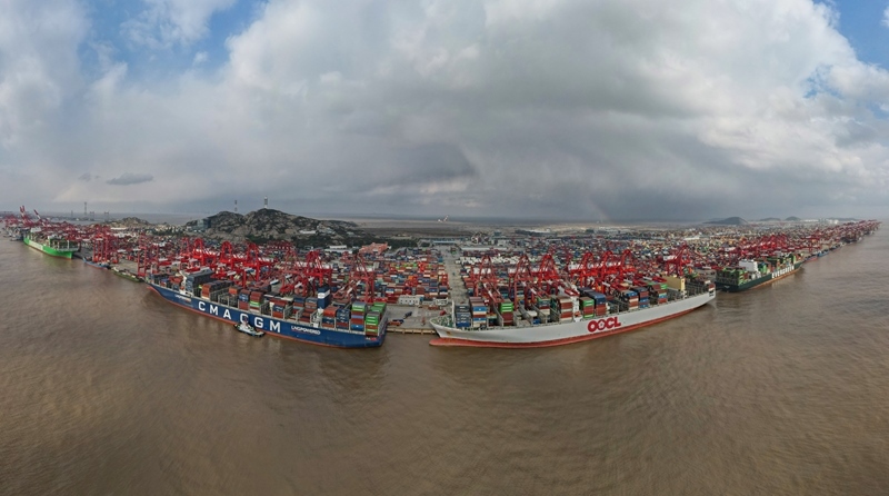 2024年12月18日拍攝的洋山港集裝箱碼頭(無(wú)人機(jī)全景照片)。新華社記者 方喆 攝