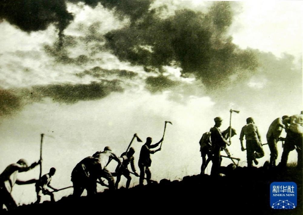 八路軍戰(zhàn)士在南泥灣開荒時的情景。吳印咸 攝