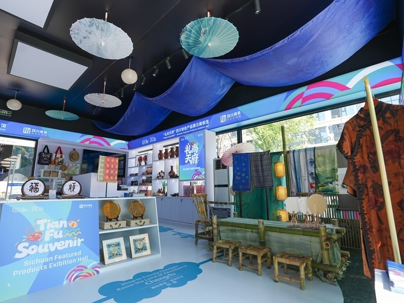 這是8月3日在成都世運(yùn)會運(yùn)動員村A區(qū)拍攝的四川特色產(chǎn)品展示展銷館。