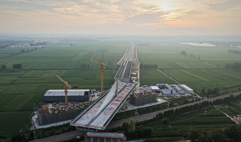 當日,在山東德州,由中國鐵建投資集團投資建設(shè)、中鐵十四局集團承建的德州至上饒高速公路(簡稱“德上高速”)臨清連接線跨京九鐵路斜拉橋?qū)崿F(xiàn)精準轉(zhuǎn)體對接。該橋采用不對稱矮塔斜拉結(jié)構(gòu),重達23500噸。