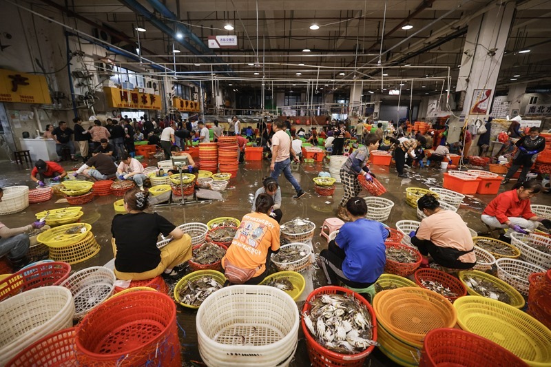舟山沈家門漁港舟山國際水產(chǎn)城的商戶們迎來了忙碌的時(shí)節(jié),近期每天約有2000噸梭子蟹到港,經(jīng)過分揀、綁扎后發(fā)往各地市場。