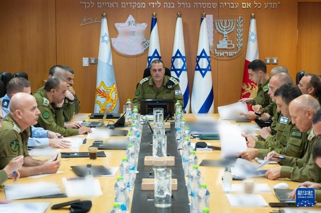 這張8月13日發(fā)布的未注明拍攝地點(diǎn)的照片顯示,以軍總參謀長扎米爾(中)當(dāng)天舉行會議。新華社發(fā)(以色列國防軍供圖)