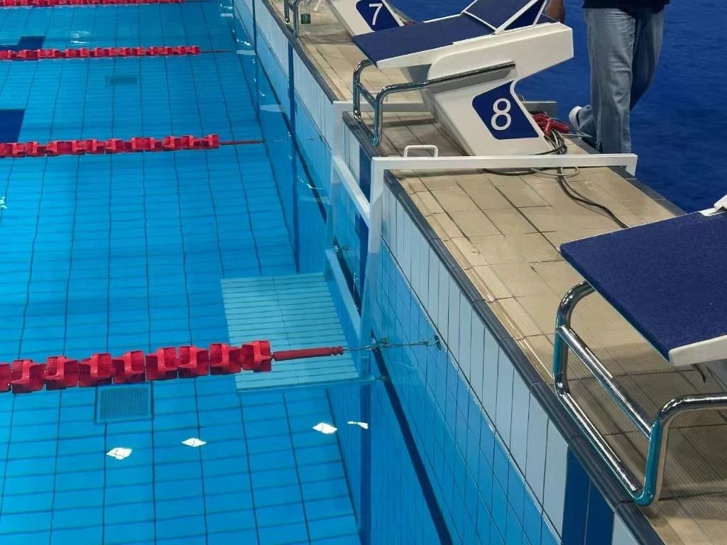 為了幫助救生和自由潛水比賽精準計時,成都體育學(xué)院三岔湖校區(qū)游泳館安裝了智能游泳出發(fā)臺。場館相關(guān)負責(zé)人王金陽介紹說,高級別賽事對泳池出發(fā)臺要求很高,要做到計時非常精確,因為哪怕0.1秒的誤差也可能對比賽結(jié)果產(chǎn)生影響,為此他們專門在泳池邊裝上了觸控板和芯片等智能計時設(shè)備,以確保達到比賽要求。