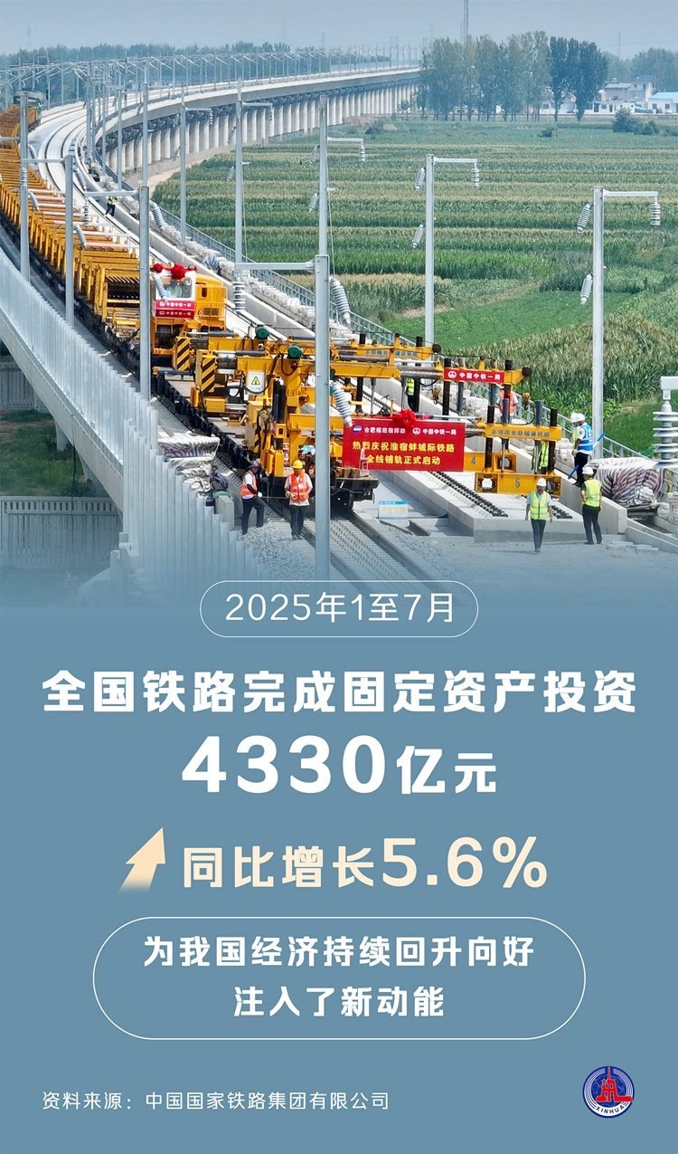 新華社北京8月16日電 題:全國鐵路建設(shè)再推進(jìn) 前7月完成固定資產(chǎn)投資4330億元