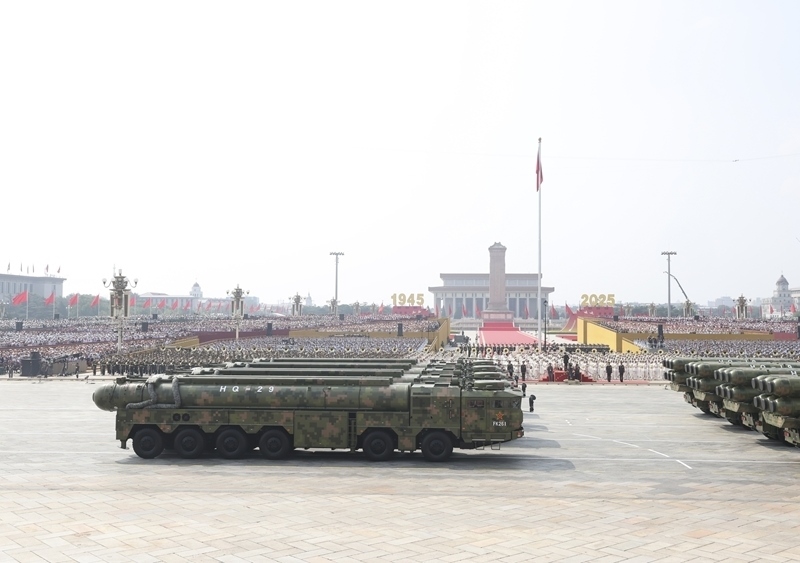 9月3日,紀念中國人民抗日戰(zhàn)爭暨世界反法西斯戰(zhàn)爭勝利80周年大會在北京隆重舉行。這是核導(dǎo)彈第二方隊接受檢閱。