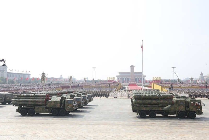 9月3日,紀念中國人民抗日戰(zhàn)爭暨世界反法西斯戰(zhàn)爭勝利80周年大會在北京隆重舉行。這是反艦導(dǎo)彈方隊接受檢閱。
