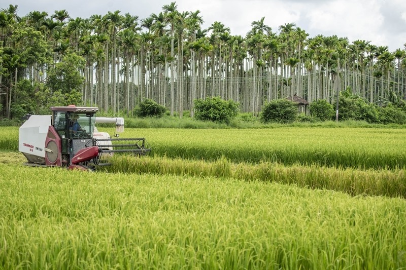 9月5日,農(nóng)民在海南省瓊海市龍壽洋田野公園收割再生稻。