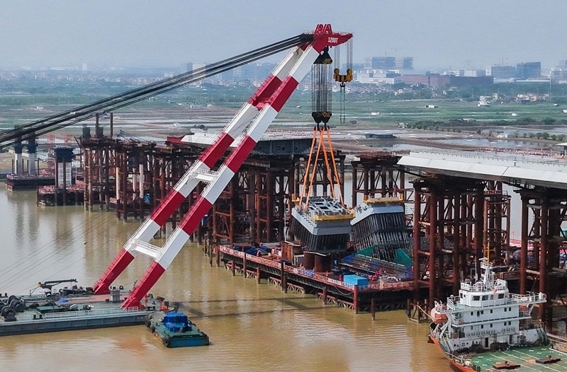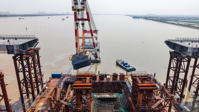 10月10日,由中鐵建大橋局承建的萬龍大橋吊裝架設首節(jié)段主塔。位于廣州南沙區(qū)的萬龍大橋跨越珠江口龍穴南水道,全長5146米,主橋長1150米,主跨608米,為粵港澳大灣區(qū)又一世界級橋梁。