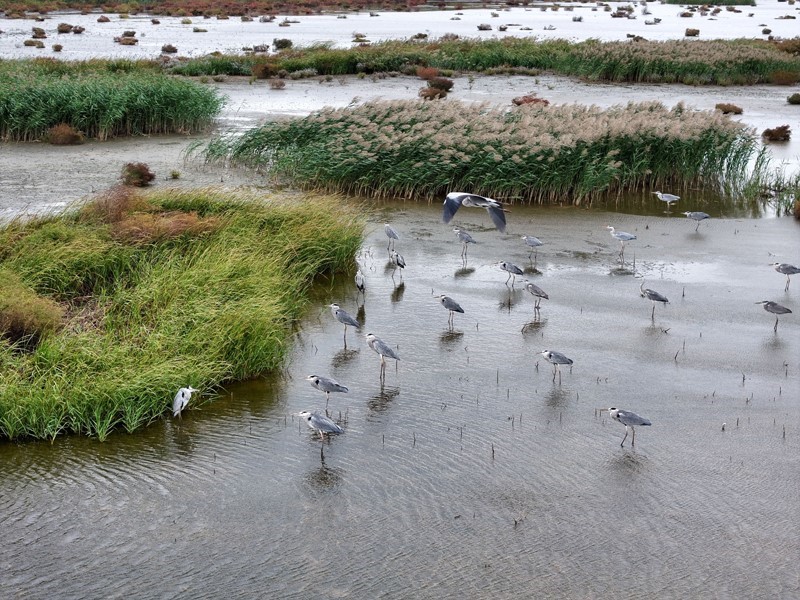 10月17日,在江蘇省泰州市姜堰區(qū)溱湖國(guó)家濕地公園,一群麋鹿在棲息、覓食(無人機(jī)照片)。