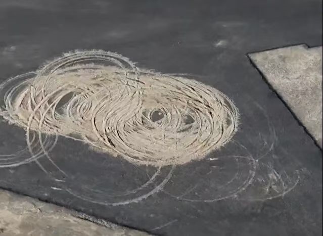 然而,近段時間以來,一些人穿越戈壁荒漠,來到這里玩漂移,留下了一個個刺眼的痕跡。尤其是在“人民”二字中間,漂移痕跡尤為嚴(yán)重,從空中俯瞰令人痛心。許多網(wǎng)友直言,這不僅是對戈壁景觀的破壞,更是對歷史和先輩的褻瀆。