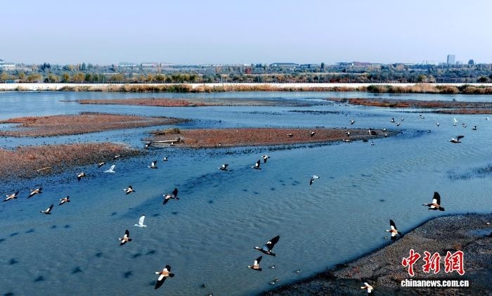 中新網(wǎng)烏魯木齊10月28日電 (黨艷麗)深秋時(shí)節(jié),成群結(jié)隊(duì)的灰雁“到訪”新疆可克達(dá)拉市。它們或飛翔在湛藍(lán)的天空上,發(fā)出陣陣?guó)Q叫聲;或集結(jié)在伊犁河可克達(dá)拉市段河畔,補(bǔ)給“能量”,為接下來(lái)的遷徙旅程做足準(zhǔn)備。