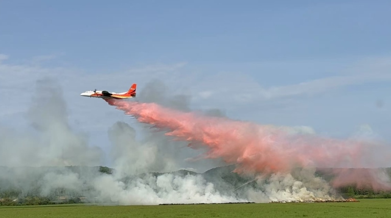 我國經(jīng)過三年自主攻關研制出的新舟60滅火飛機滅火實戰(zhàn)場景。新舟60滅火飛機最大載水量6噸,滿載作業(yè)半徑600公里,填補了森林草原滅火大飛機的空白和短板。應急管理部供圖