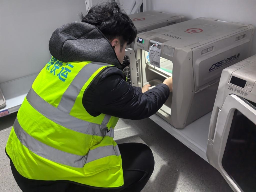 中鐵快運太原南站營業(yè)部業(yè)務(wù)負責(zé)人武鑫介紹:“我們自今年10月啟動高鐵寵物托運服務(wù)試點以來,已經(jīng)托運過寵物貓、寵物狗等。旅客可以在12306官方平臺或到營業(yè)部現(xiàn)場辦理托運業(yè)務(wù)。托運前,需要提交相關(guān)部門的檢疫證明。工作人員會對寵物運輸箱和列車環(huán)境進行嚴格消毒。寵物運輸箱內(nèi)還帶有攝像頭,主人可以通過監(jiān)控查看自家寵物的實時狀態(tài)。我們配備的工作人員,也會定時檢查寵物狀態(tài),提供必要的安撫和飲水。”