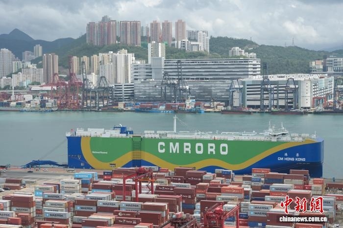 2025年9月28日,全球首艘9300CEU(標(biāo)準(zhǔn)車位)甲醇雙燃料動力滾裝船“港榮”輪(“CM HONG KONG”輪)首航香港儀式在香港舉行。圖為“港榮”輪。(資料圖)  中新網(wǎng)記者 陳永諾 攝