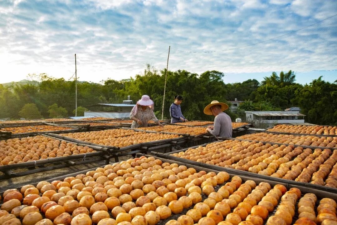 在廣東省梅州市平遠(yuǎn)縣石正鎮(zhèn)中東村,村民正趁晴好天氣曬制柿餅。平遠(yuǎn)縣供銷總公司通過合作社與農(nóng)戶簽訂收購合約,使石正柿花成為當(dāng)?shù)剞r(nóng)民增收致富的特色產(chǎn)業(yè)。馮錫權(quán)攝(影像中國)