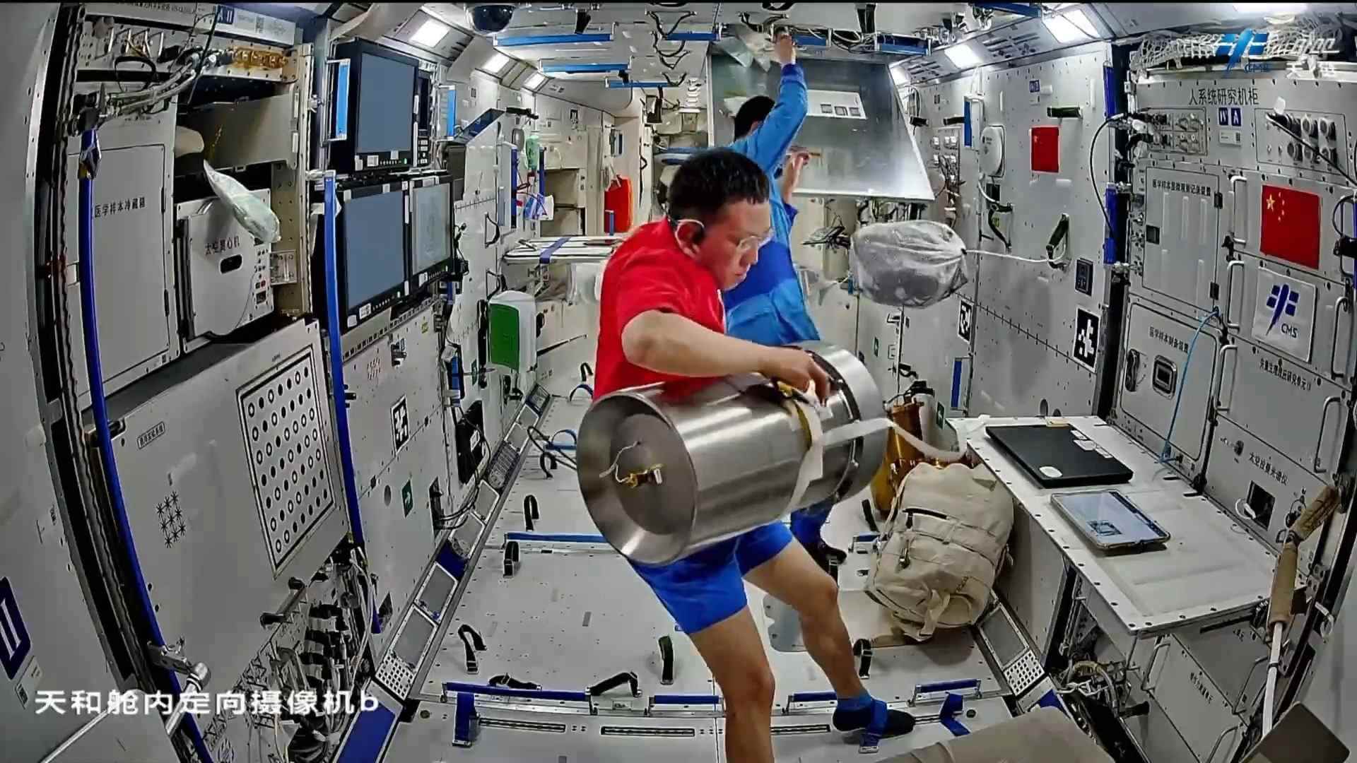 在設(shè)備檢查維護(hù)方面,乘組開展了低溫存儲(chǔ)裝置及-80℃空間冰箱巡視、環(huán)控氣瓶壓力檢查、再生生保系統(tǒng)設(shè)備維護(hù)等工作。