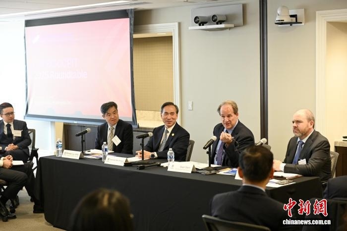 當?shù)貢r間12月3日,華盛頓,中國貿(mào)促會組織中國企業(yè)家代表團與美中貿(mào)易全國委員會及其會員企業(yè)交流座談。中新社記者 陳孟統(tǒng) 攝