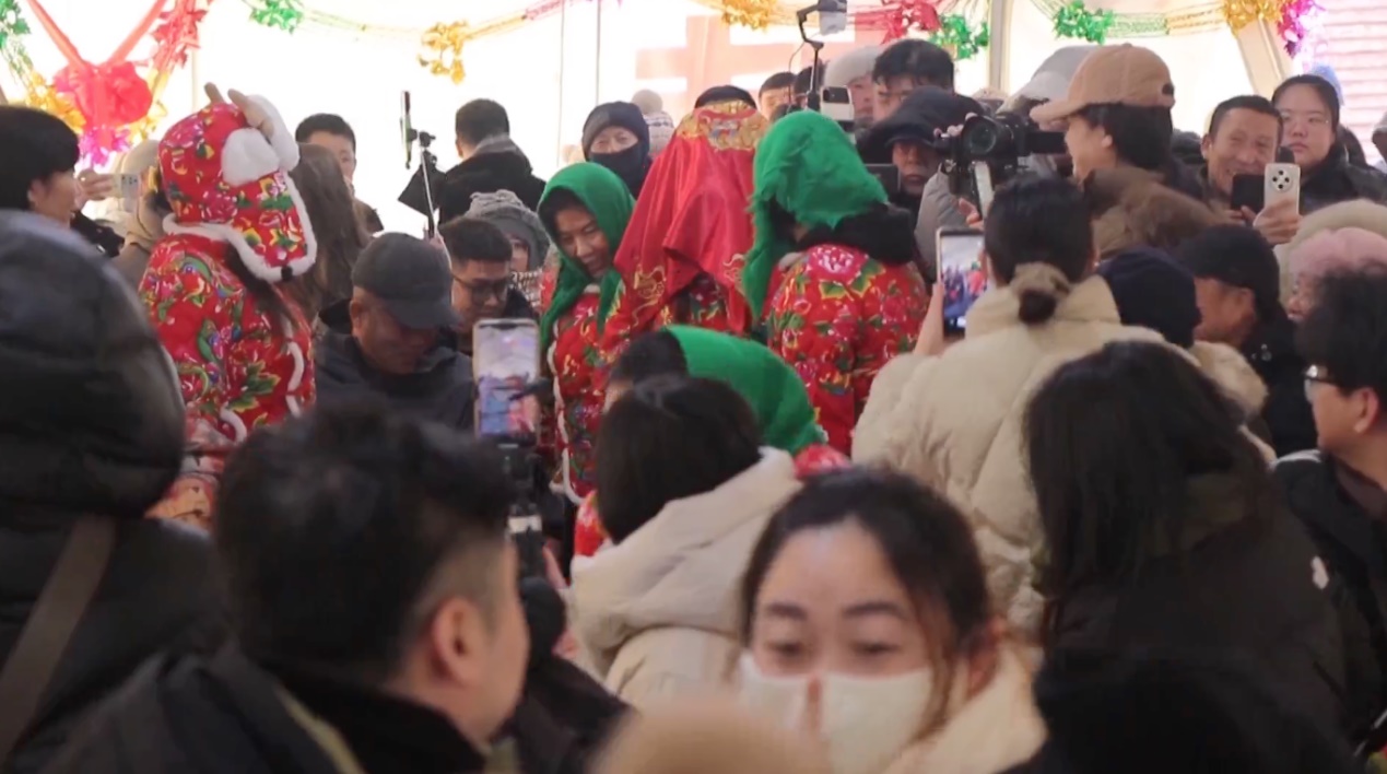 一場精心籌備的東北民俗婚禮體驗,讓大棚內(nèi)五湖四海的游客體驗東北鄉(xiāng)土風情,大棚外,鍋包肉、雪衣豆沙等小吃的裊裊熱氣氤氳升騰。