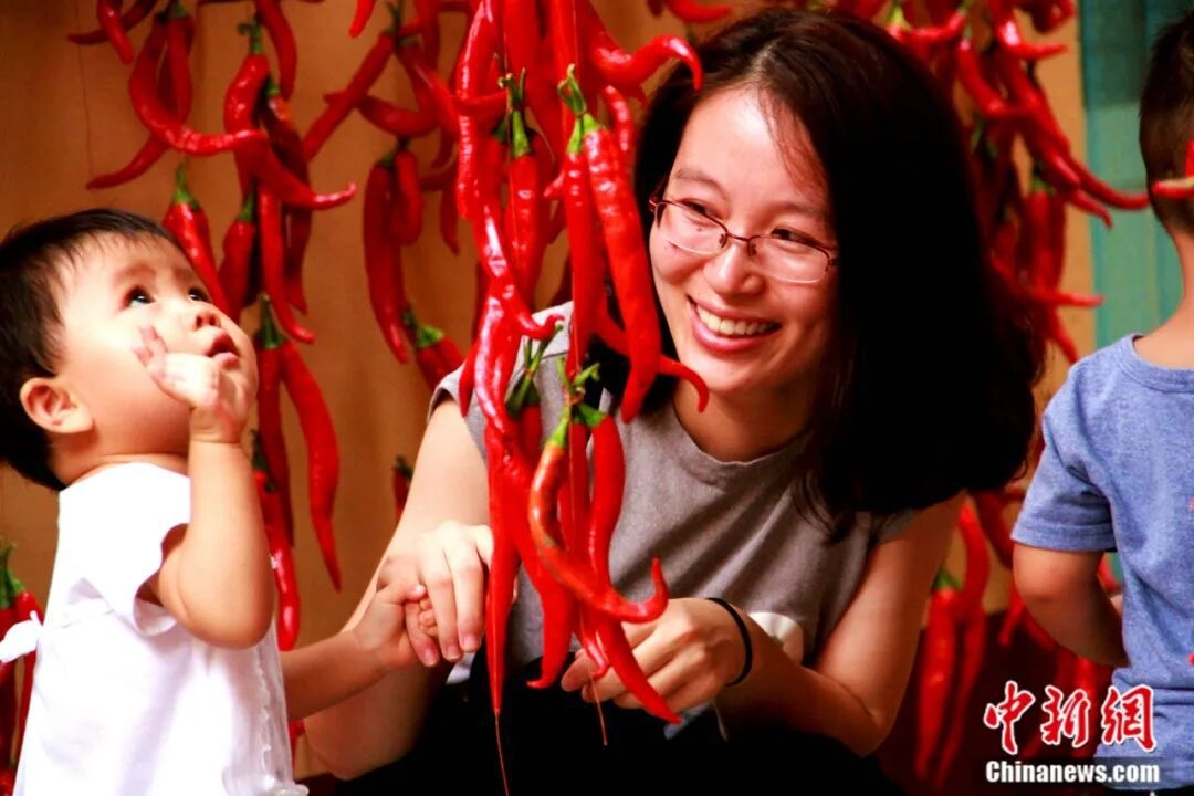 當(dāng)?shù)貙⒗苯肺幕疃热谌氘a(chǎn)業(yè)發(fā)展,孩子們?cè)诶苯沸℃?zhèn)魏青村坐著游船,家長(zhǎng)們看著油亮亮的辣椒想著晚上應(yīng)該怎么吃,一陣陣歡笑聲暈染出一幅幅生活畫卷。