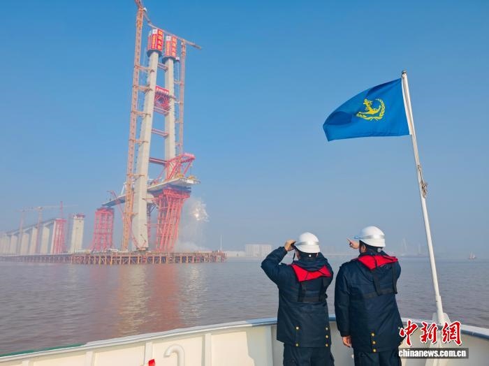 杭州灣作為世界三大強潮海灣之一,以強潮急流、快速沖淤和復雜通航環(huán)境著稱,給橋梁建設(shè)帶來嚴峻考驗。面對挑戰(zhàn),嘉興海事部門成立現(xiàn)場工作組,開通行政審批綠色通道,推行“一站式”服務(wù)保障,并充分發(fā)揮“VTS+CCTV+海巡艇+無人機”綜合立體護航體系的作用,持續(xù)保障大橋建設(shè)安全高效推進。