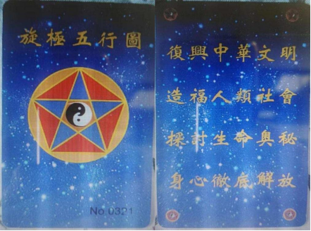 ▲“乾源文化”非法組織銷(xiāo)售的“旋極五行”圖卡,聲稱此卡“具有宇宙能量”,可以幫助學(xué)員提升自我