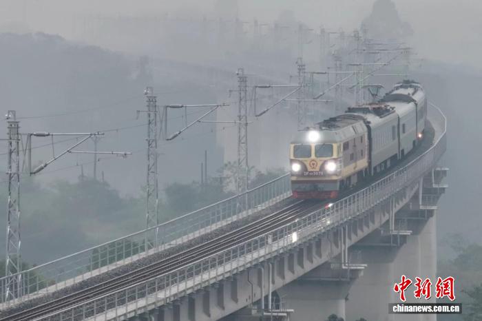 圖為2025年11月,檢測(cè)列車正在通過隆瀘敘鐵路高架橋梁段(資料圖)。蜀道鐵投集團(tuán)供圖