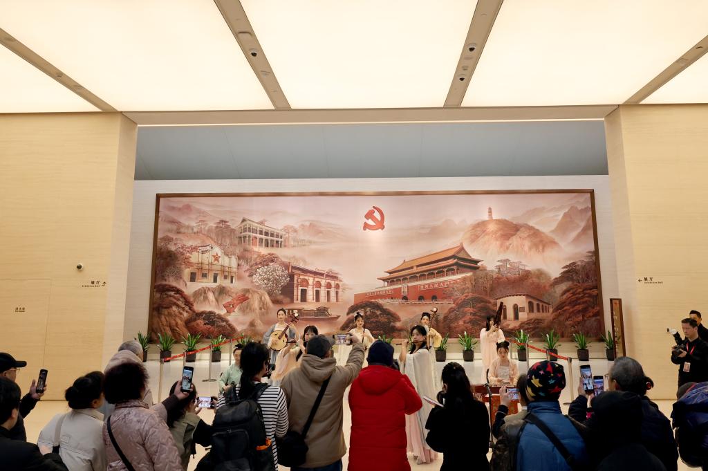 2月17日,參觀者在中共一大紀(jì)念館內(nèi)觀看表演。新華社記者 方喆 攝