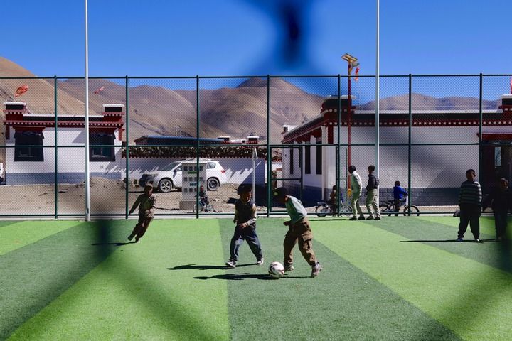 這是孩子們在長所鄉(xiāng)森嘎村的足球場上踢球。新華每日電訊記者 周昱龍 攝