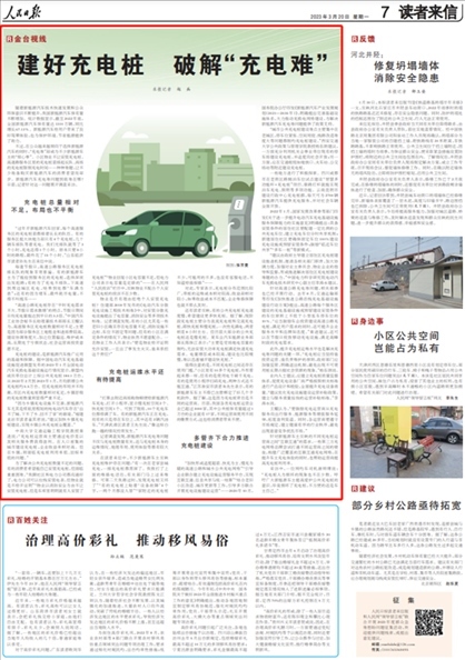 今年3月20日,《人民日報(bào)》讀者來信版“金臺視線”欄目《建好充電樁 破解“充電難”》一文,在消費(fèi)者個(gè)人安裝新能源汽車充電樁方面,關(guān)注了多位“人民投訴”平臺用戶吐槽“物業(yè)不配合業(yè)主安裝充電樁以及個(gè)人充電樁的維護(hù)管理不到位”等問題。