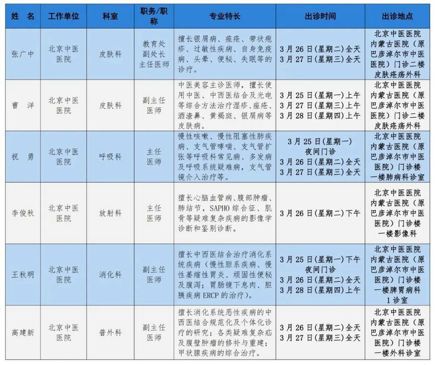 京蒙協(xié)作 政協(xié)助力。每周有北京相關(guān)協(xié)作醫(yī)院專家來呼和浩特出診,現(xiàn)將本周專家出診信息予以發(fā)布。