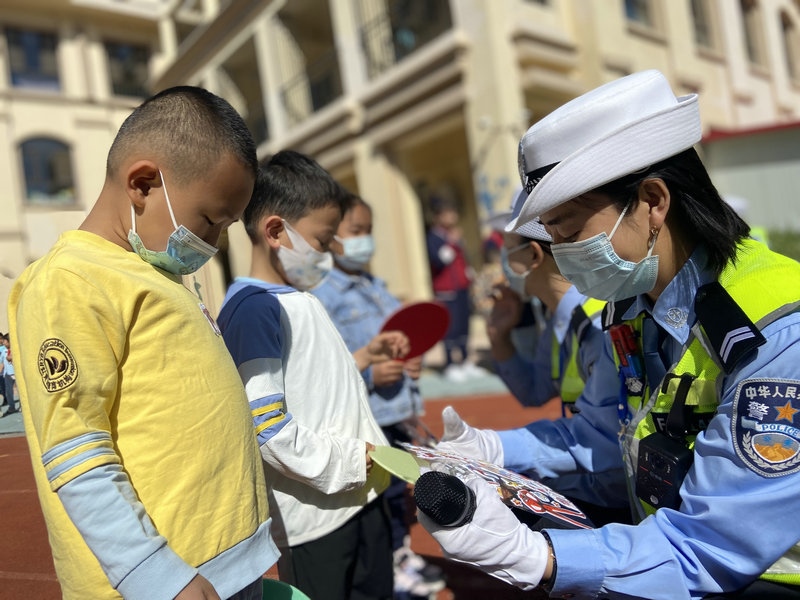 為進(jìn)一步向轄區(qū)內(nèi)小學(xué)生普及交通安全知識,呼和浩特市公安局交通管理支隊賽罕大隊女警護(hù)學(xué)中隊民輔警走進(jìn)校園,開展“交通安全小課堂”的安全教育活動,通過PPT講解、播放交通事故案例、互動問答、戶外游戲等多種形式,為小朋友們送去了一份交通安全知識的”六一“禮物。