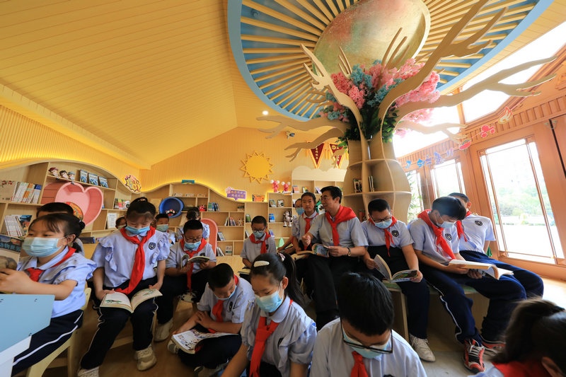 自治區(qū)道德模范楊嶺攜手蒙牛集團(tuán)走進(jìn)賽罕區(qū)敕勒川綠地小學(xué)騰飛路校區(qū),為那里的孩子們捐建悅讀吧。