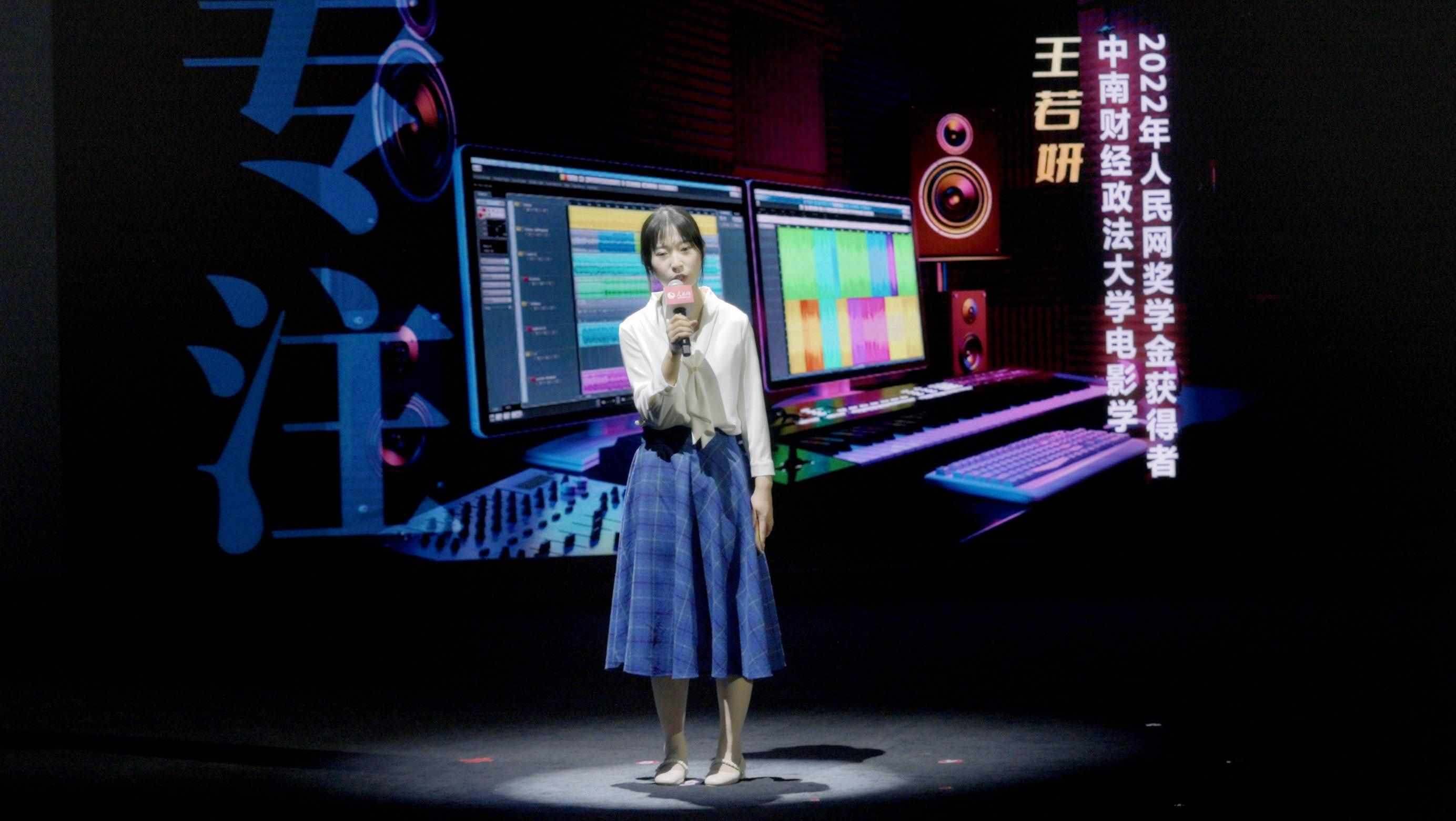 2022年人民網(wǎng)獎(jiǎng)學(xué)金獲得者、中南財(cái)經(jīng)政法大學(xué)電影學(xué)專業(yè)學(xué)生王若妍分享自己的故事。實(shí)習(xí)生韓華良 攝