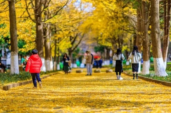 漫步于云南大學的銀杏大道,感受秋日浪漫。云南大學供圖