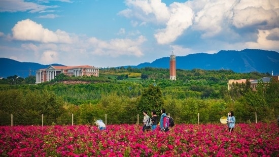 云南大學校內的玫瑰花田。云南大學供圖